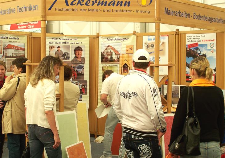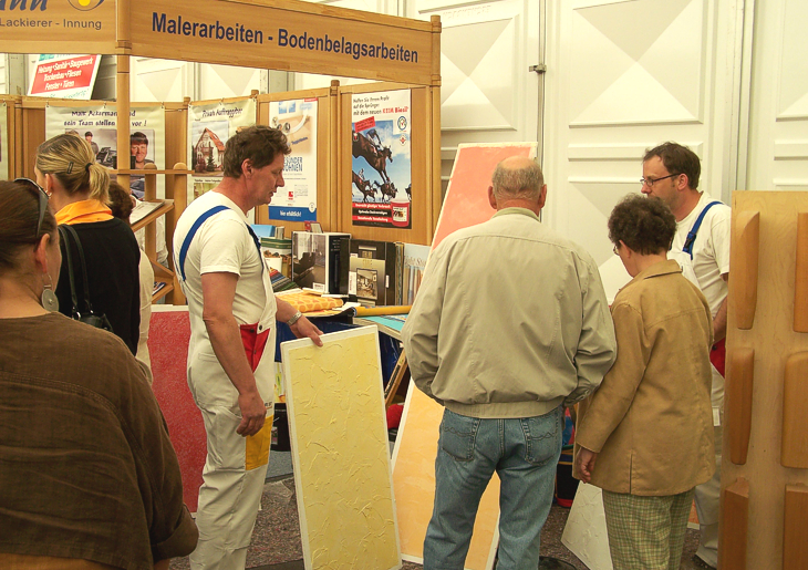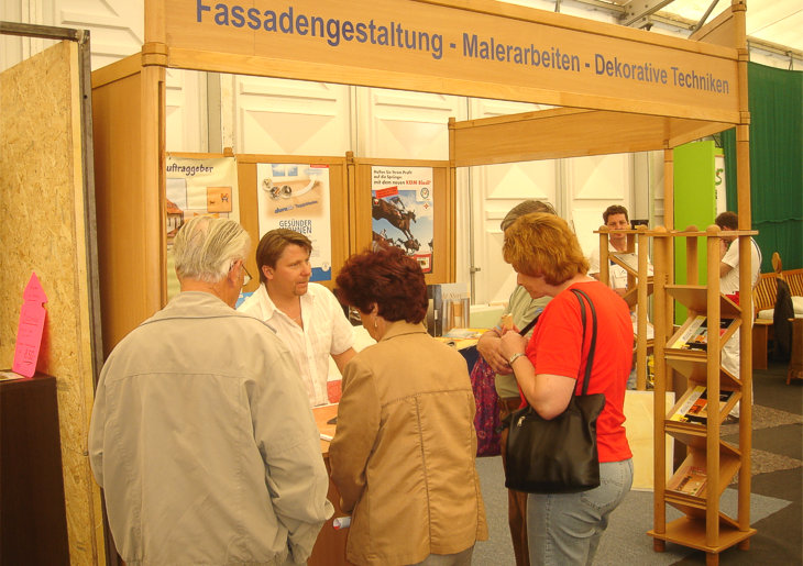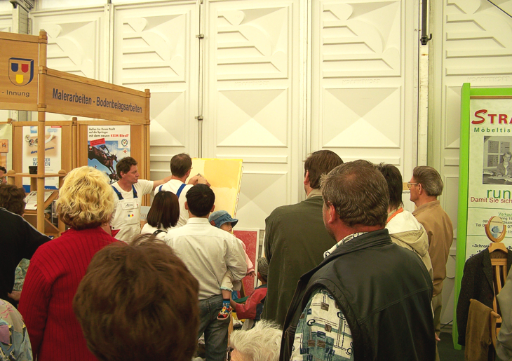 Außer den Anregungen und der fachlichen Beratung waren auch, wie im Vorjahr, die praktischen Vorführungen von "Malertechniken" sehr gefragt. Wir konnten unserer Kreativität freien Lauf lassen, was richtig Spaß machte.